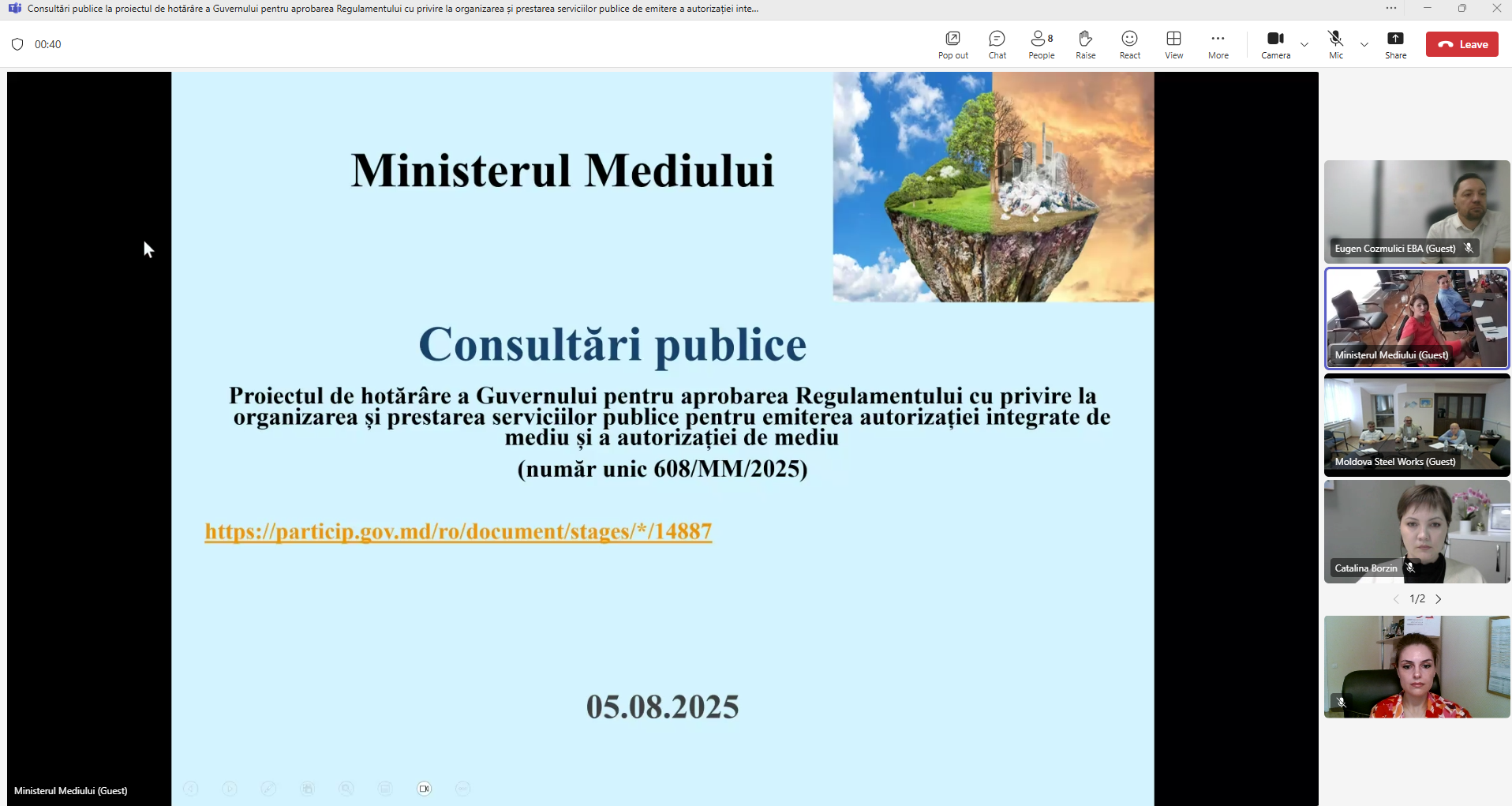 Public Consultations on the Draft Government Decision for the Approval of the Regulation on the Organization and Provision of Public Services for Issuing the Integrated Environmental Permit and the Environmental Permit were held under the auspices of the Ministry of Environment 📄 🌿.