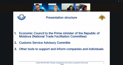 • Sharing current practices of the Moldovan Customs Service and its initiatives to actively engage with the private sector.