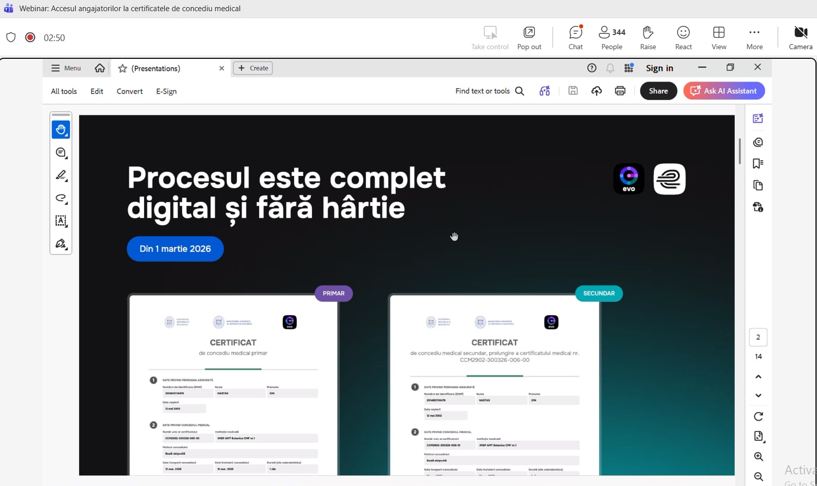 The Executive Directorate of the Foreign Investors Association in Moldova (FIA), together with representatives of its member companies, participated in a webinar organized by the e-Governance Agency. The event was dedicated to employers and focused on the online management of medical leave certificates, which, starting from March 1, 2026, are issued exclusively in digital format.